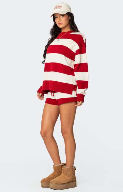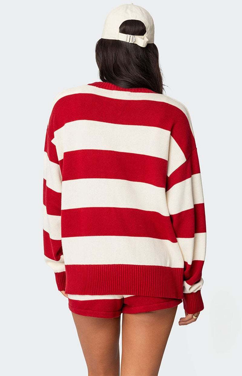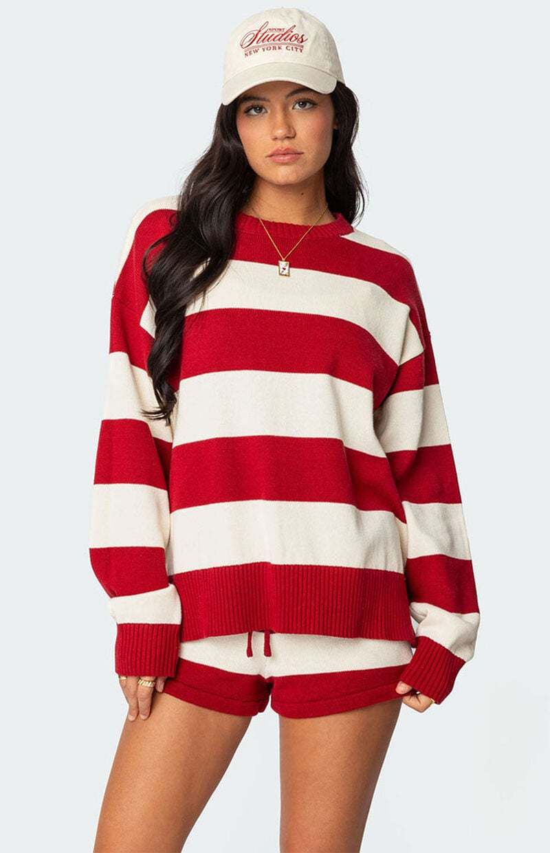 Online only! Elevate your sweater game with this trendy Riley oversized striped sweater by Edikted. With its cool look and oversized fit, you'll be looking cute & cozy with every wear.