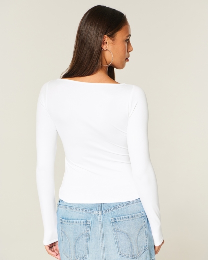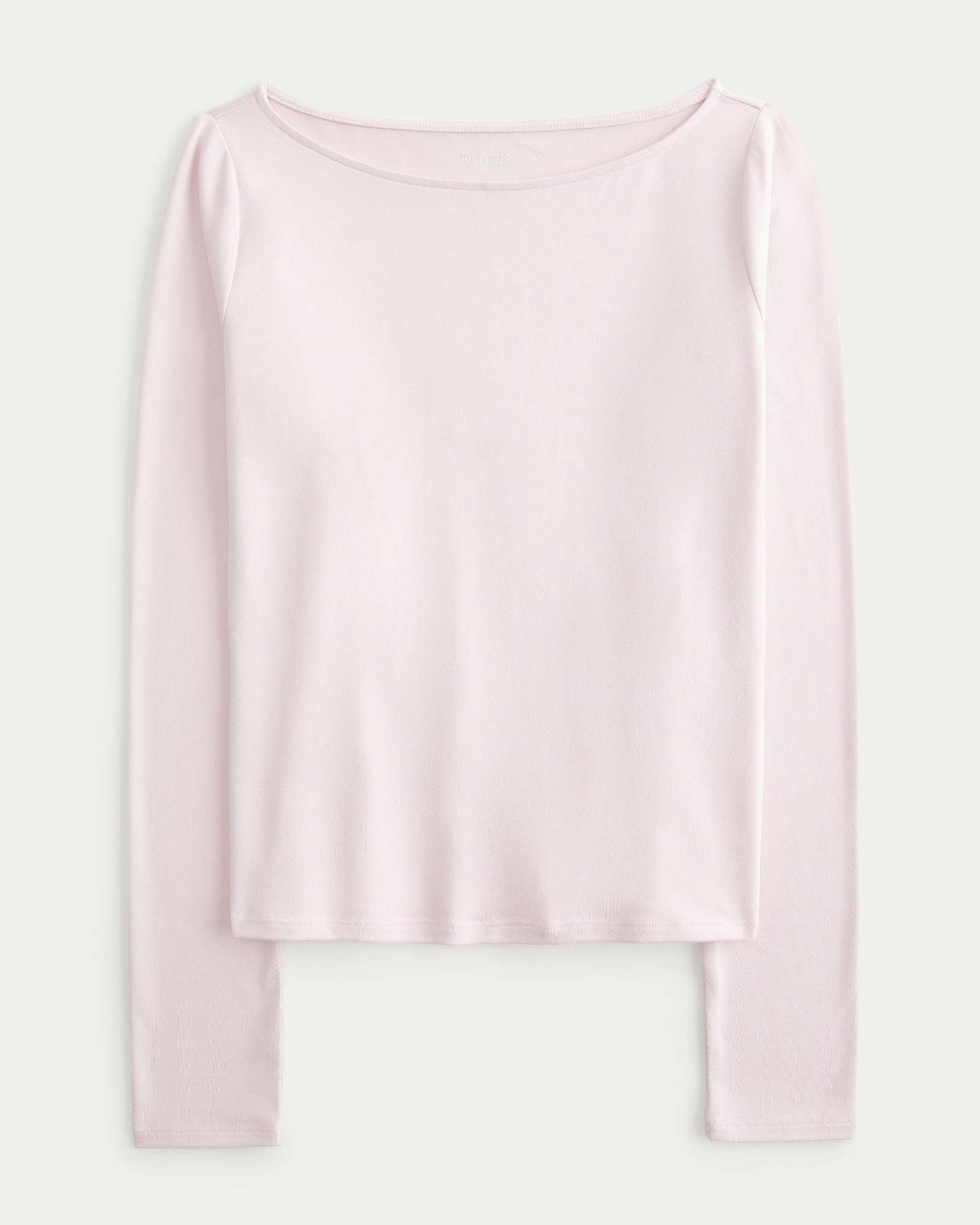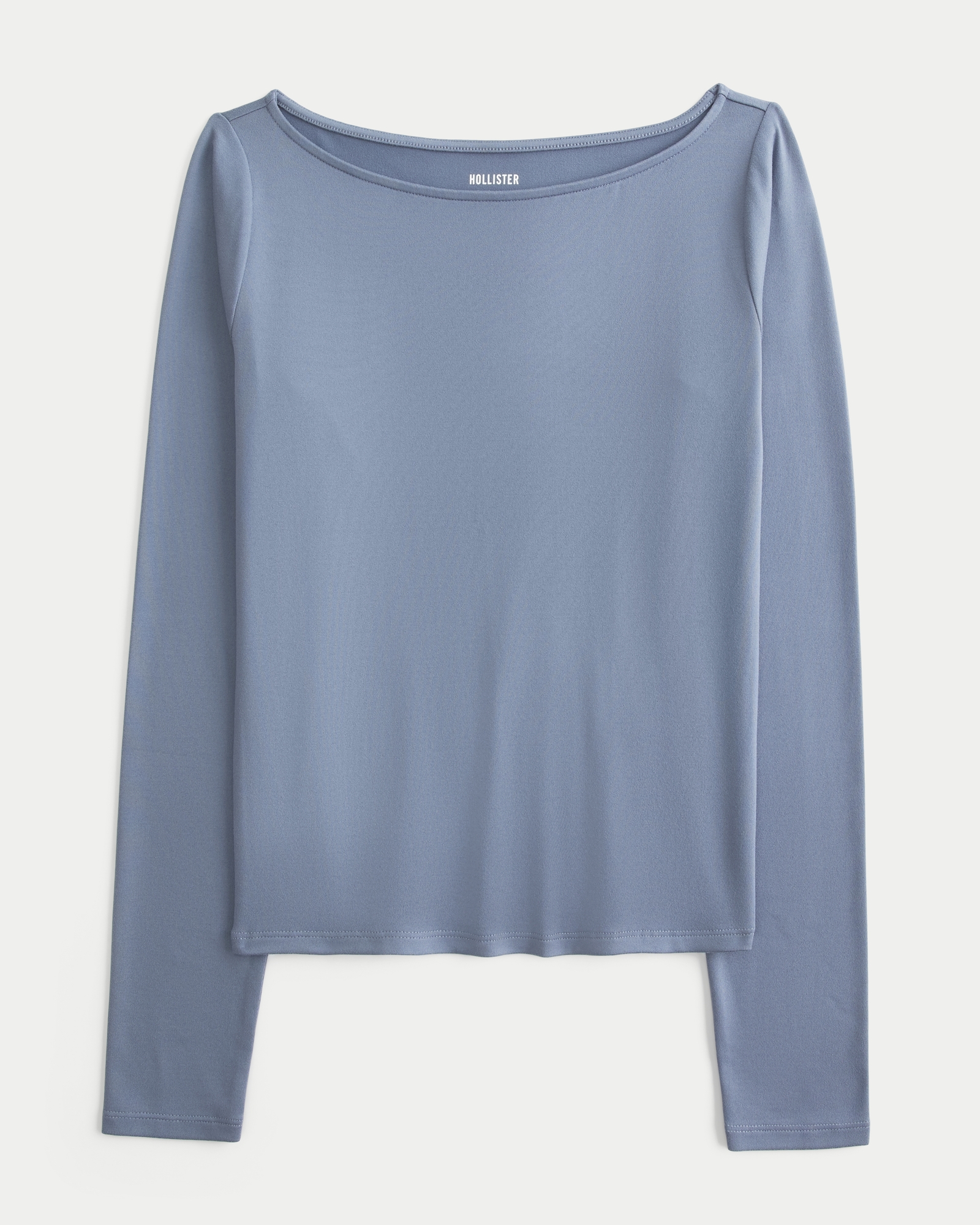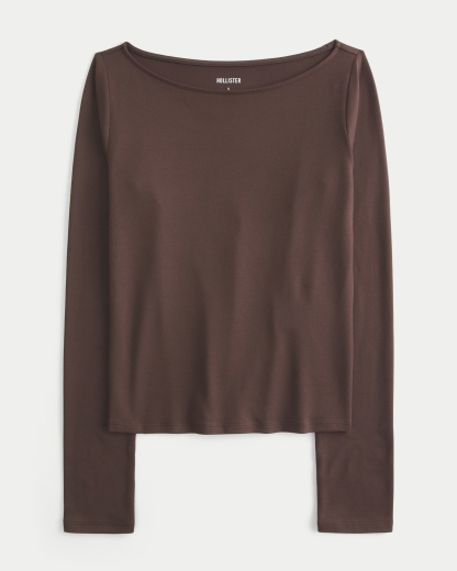 Long-Sleeve Seamless Fabric Slash-Neck Top