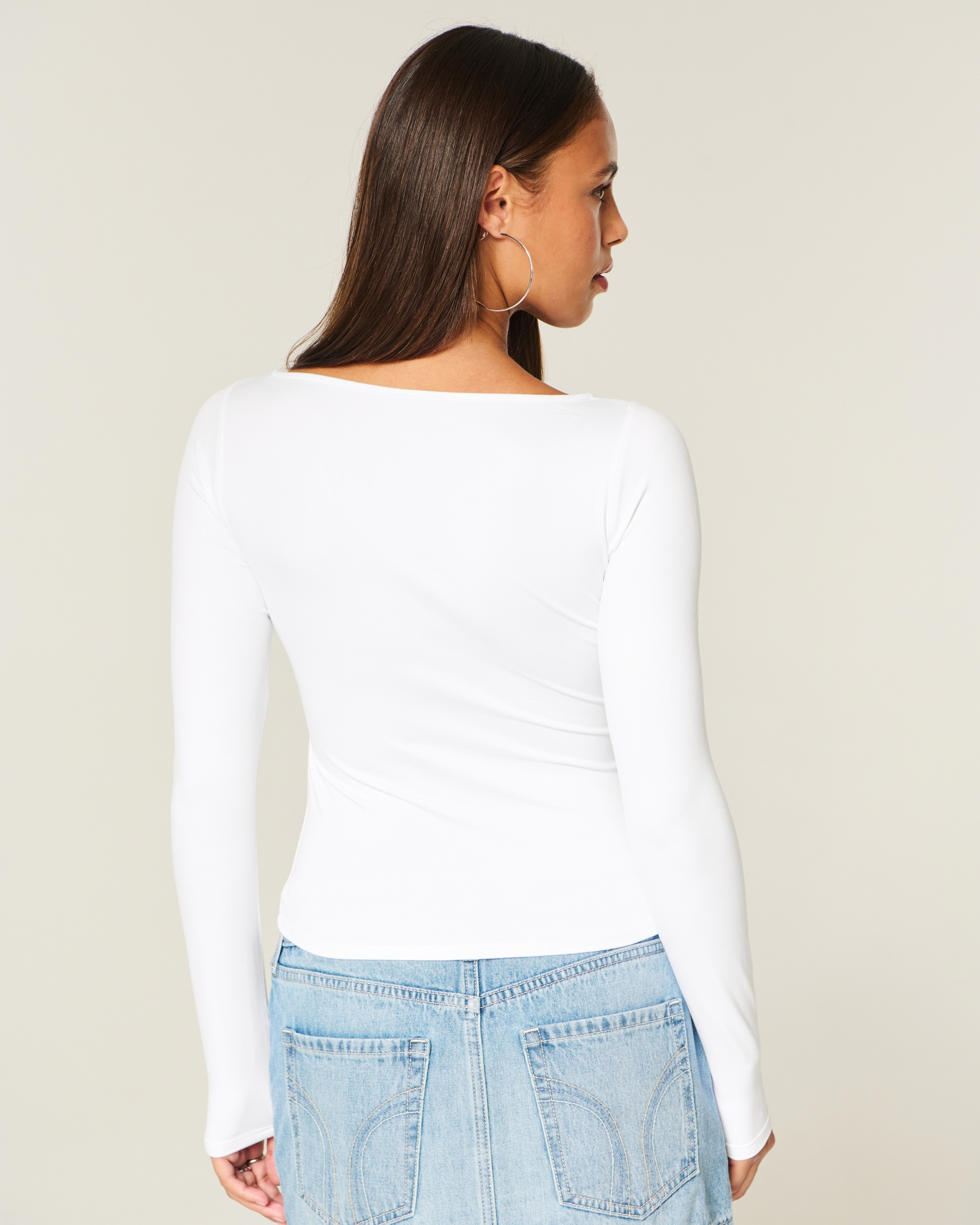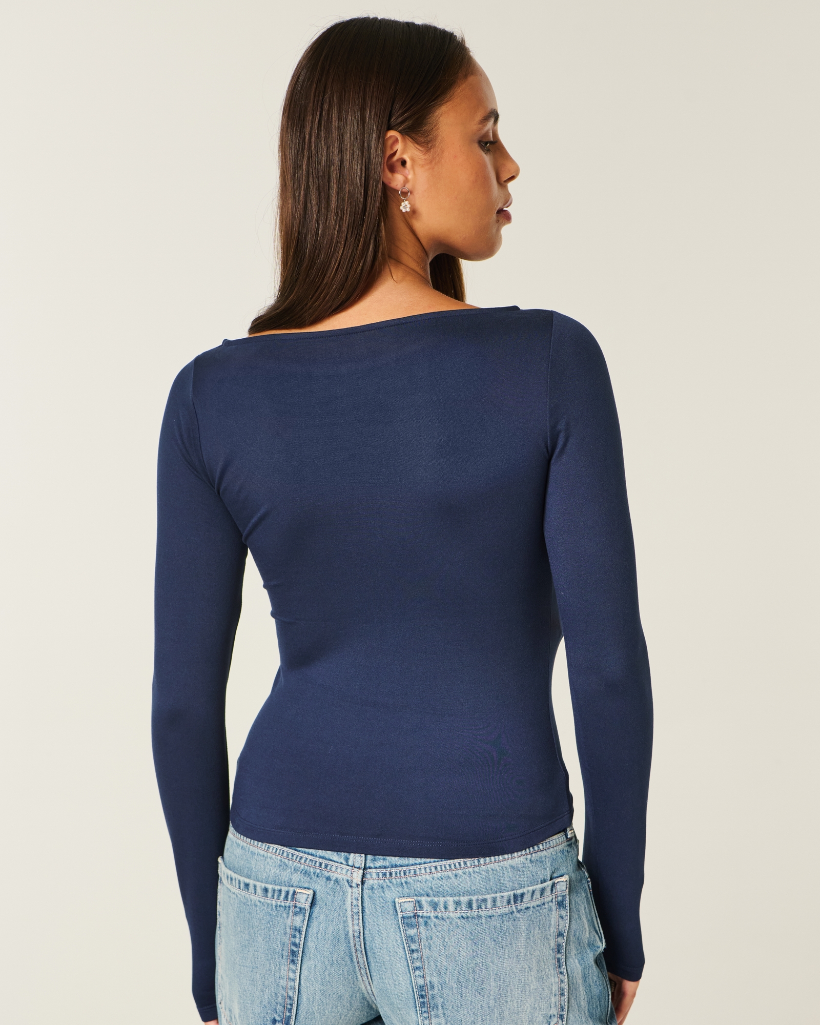 This cute and comfy top is made with super soft fabric with a seamless look and feel. Slash neckline, long sleeves. Slim Fit. Imported.