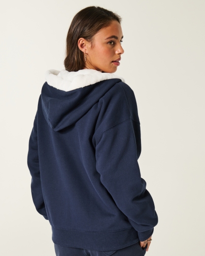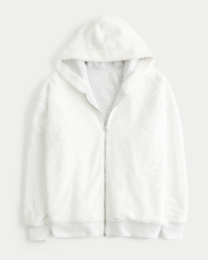Reversible Faux Fur-Lined Fleece Zip-Up Hoodie